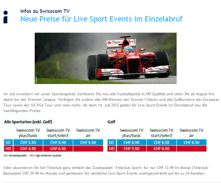 Ich wäre bereit, das "Teleclub Sport" Zusatzpaket zu abonnieren, finde jedoch die Preispolitik schlecht, dass man dennoch das "Teleclub Basis-Paket" für CHF 29.90 dazukaufen muss!