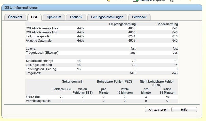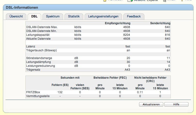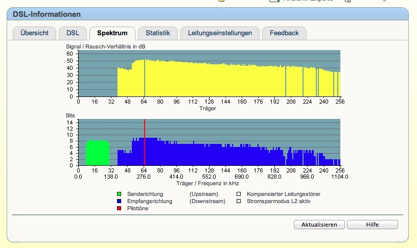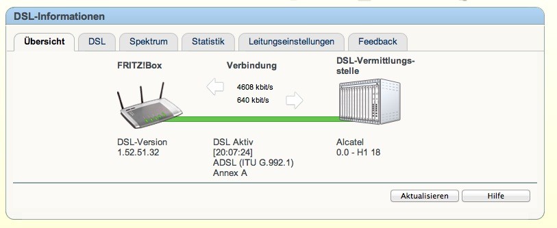 Das lustige ist, wenn die FB die Verbindung verloren hat, ist der Balken zwischen FB und DSLAM grün.