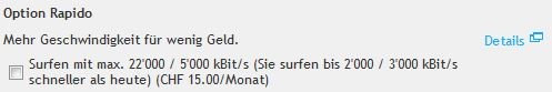 So viel ich weiss, ist die Mindestanforderung für die Aktivierung von Rapido auf Vivo 4 Stern ein 25'000/10'000 Access Profil.