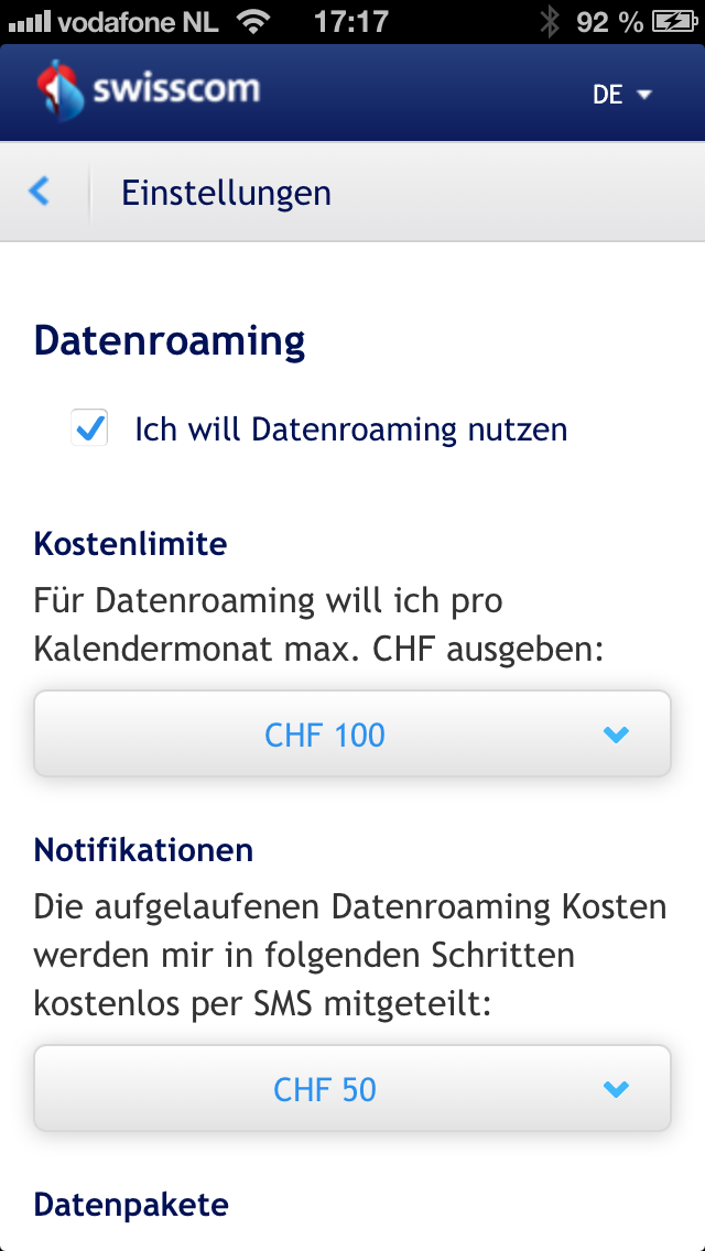 Auch *Mobile Daten* müssen aktiviert werden um über das Handy Netz Push-Benachrichtigungen zu erhalten. anstelle über WLAN.