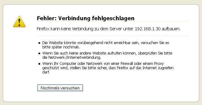 Dann kommt ein Verbindungsfehler:
