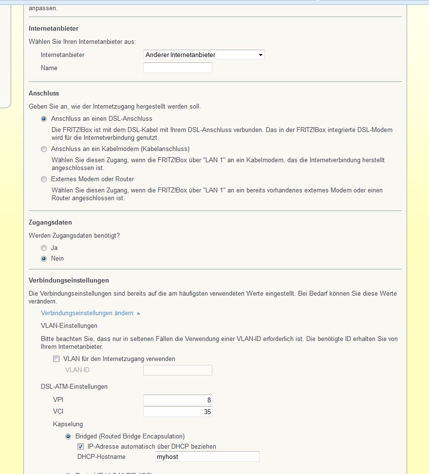 Ich bin auch bereits dem Wizzard auf der FritzBox gefolt, die Swisscom und Swissxom All-IP als Anschlussmöglichkeit anbietet, jedoch alles ohne Erfolg.