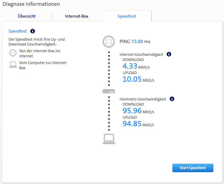 Das Problem ist, dass wir ständige Unterbrüche im Wlan haben, die Internetgeschwindigkeit meist zu wünschen übrig lässt sowie auch das SC TV 2.0 ständige Bildstörungen ausgiebt, so massiv, dass TV schauen teilweise (oder nur mit sehr, sehr viel Geuld) möglich ist. Wir haben in der Zwischenzeit die 3.te Internetbox, beide TV Boxen wurden bereits ausgetauscht. Aber immernoch ist das Problem vorhanden.