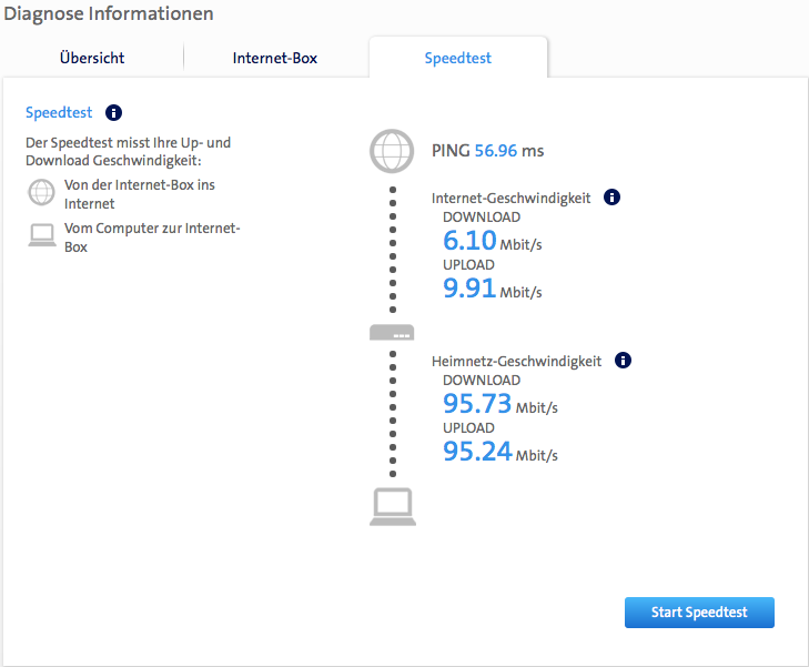 Wlan funktioniert nur mässig, mit Radio gar nicht. Alle am Kabel angeschlossenen Devices funktionieren nun eigentlich, aber immernoch nicht so wie wir es gerne hätten. Das 40'000 Abo sollte fü unsere Bedürfnisse ausreichen, wenn wir den vollen Speed (laut Techniker leitungstechnisch möglich) bekommen.