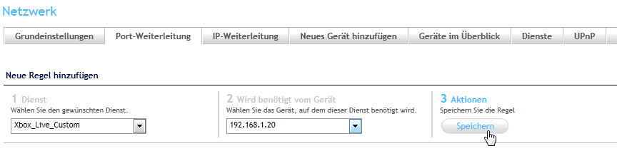 4) Dienst der Xbox 360 (andere IP-Adresse oder Hostname auswählen, als im Beispiel...) zuordnen: