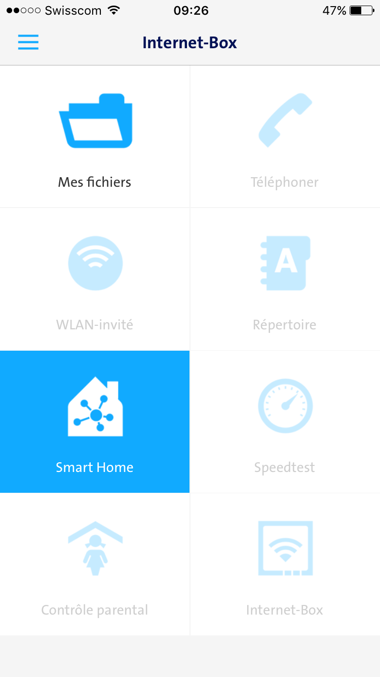 En lieu et place une version 08.0.1.12 encore plus problèmatique que l’ancienne dans le sens que l’App Internet-Box sur iOS ne permet plus que les options “Mes fichiers” et “Smart Home” par Wifi en local. Tout le reste est en ombré.