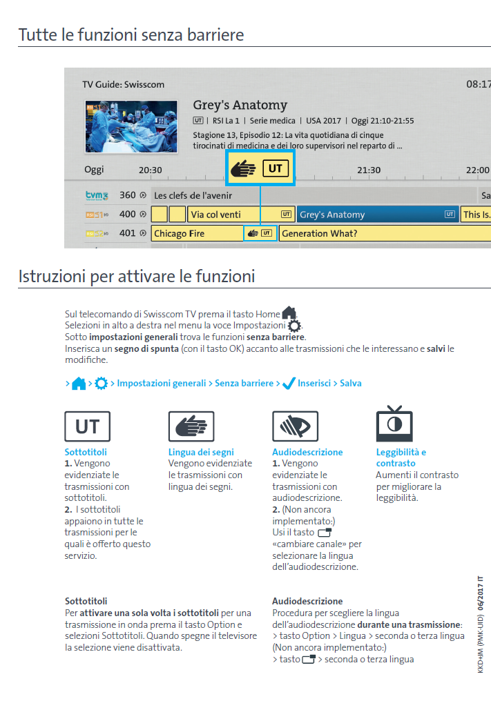 Ho saputo che con il box UHD si ha la possibilità di evidenziare nella TV Guide o nelle informazioni sul programma le trasmissioni con funzioni senza barriere.