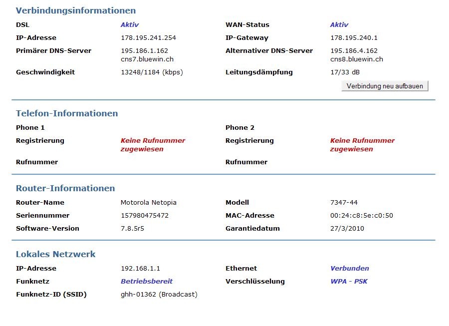Den Router sollte ich gem. Hotline nicht Reseten, da das System sonst wieder Speed reduziert wegen Unterbruch!!!!