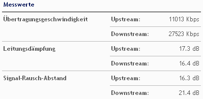 Down ca. 9`500 kbit/s ohne BWTV, im abegsicherten Modus usw.