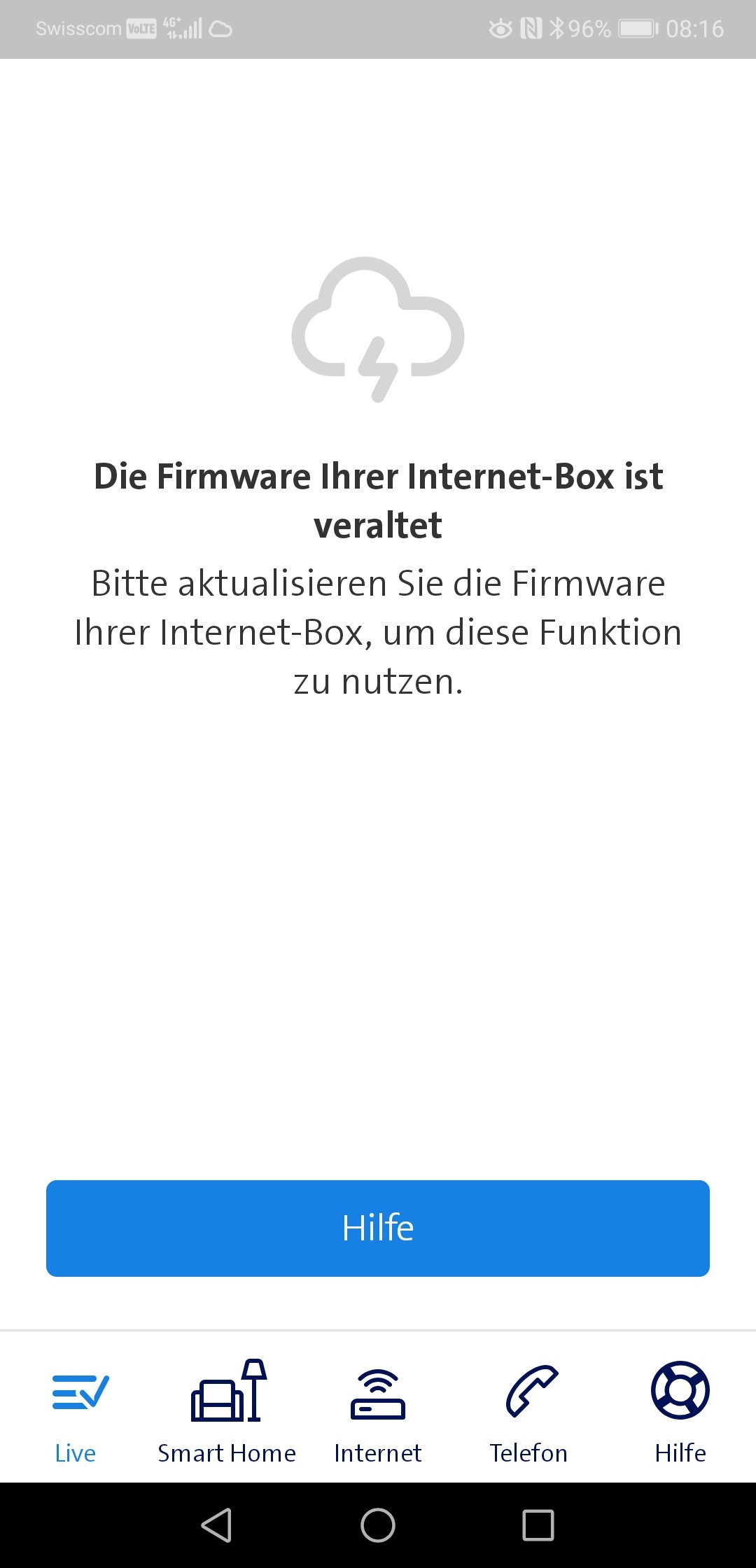 Übrigens: wenn ich nicht im Heimnetz bin, dann erhalte ich die folgende Fehlermeldung in der App.