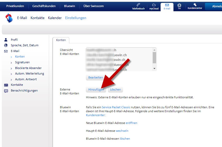 Hi skud das geht mit deinem webmail von bluewin, oder auch mit outlook.com.