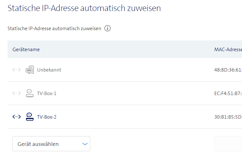 Bei der IB kann man hingegen eine Statische IP-Adresse automatisch zuweisen d.h. die Cam bekommt vom DHCP-Server der IB immer die selbe IP-Adresse automatisch zugeteilt. Dies kannst du im Web-GUI der IB unter Netzwerk>Einstellungen machen.