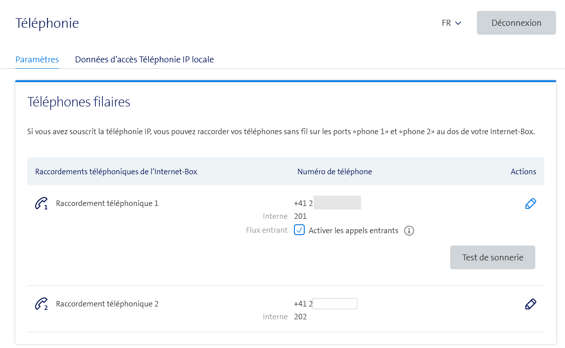L'étape après, utiliser le test de sonnerie sur chacun des ports analogiques.