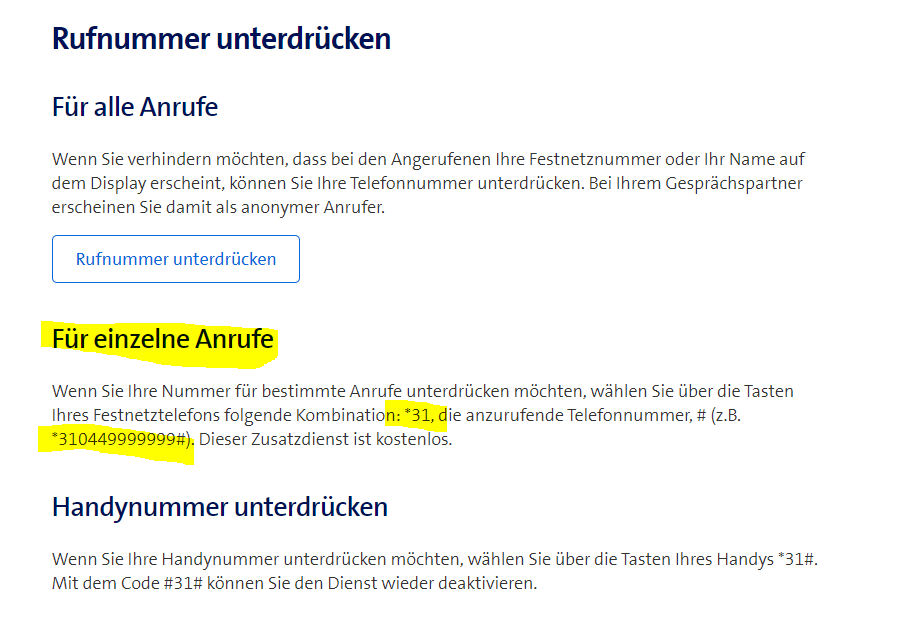 Die Satusabfrage *#31# funktioniert z.B. auch nur bei Mobile.