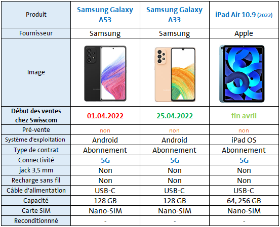 Chaque mois, je créerai un post pour vous informer des prochaines sorties de tablettes, watches et smartphones chez Swisscom. Dans le courant du mois, je mettrai régulièrement à jour les informations pour que vous ayez une vue d'ensemble mensuelle des nouveautés qui vous attendent 😊.