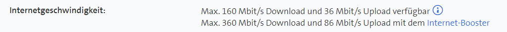 Dann war plötzlich der Internetbooster 5G bei mir möglich, im Checker stand und steht auch Heute 360/86 maximal, worauf ich diesen oderte.
