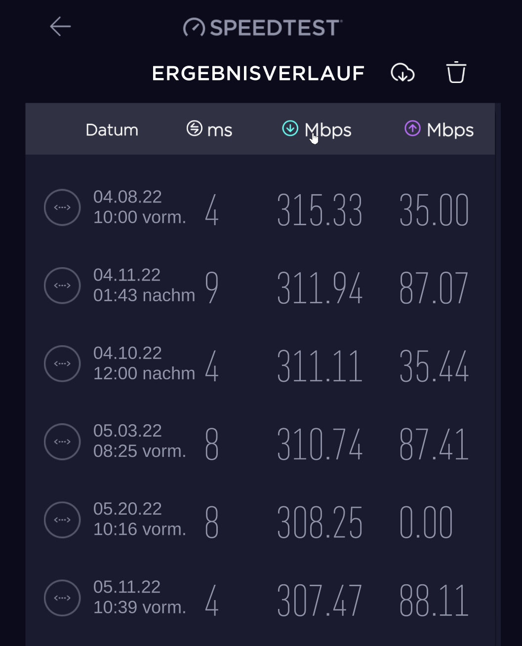 und die Speedmessungen liegen aktuell bei maximal 200/90 in der Regel sind es aber nur noch 160-170/90
