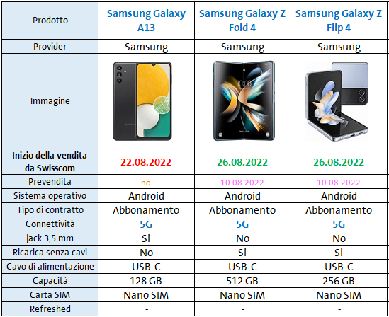 Ogni mese pubblicherò un post per informarvi sulle prossime uscite di tablet, orologi e smartphone proposti da Swisscom. Nel corso del mese, aggiornerò regolarmente le informazioni in modo che abbiate una panoramica mensile delle novità che vi aspettano 😊.
