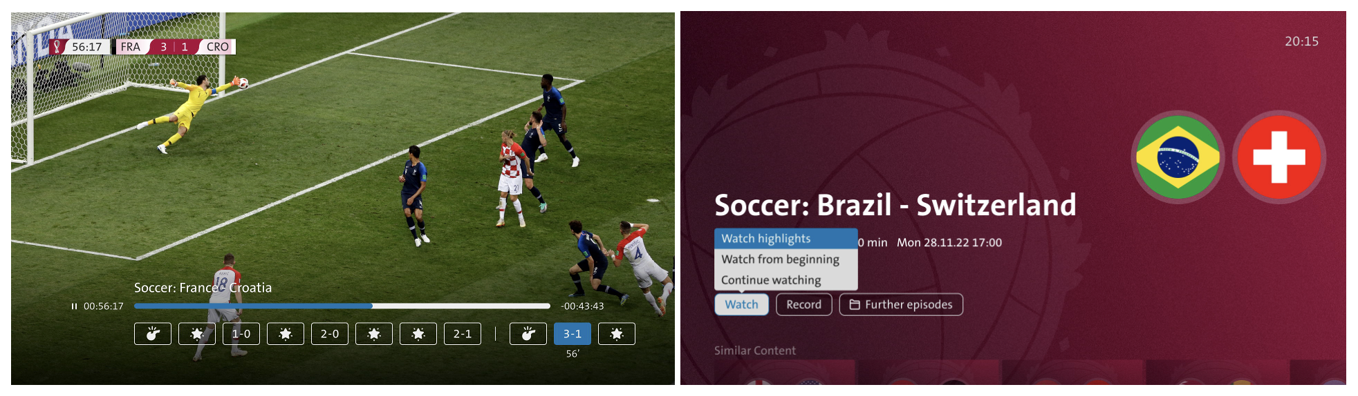 The highlights work with a TV-Box from Swisscom, on blueplus.ch or via the blue TV app (iOS, Android, Apple TV, Samsung and LG etc.). All you need is a TV subscription with 7-day Replay. Switch to blue TV M or L now, to take advantage.