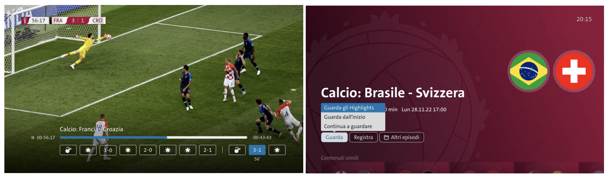 Pronti al fischio di inizio? Dato che a causa del fuso orario gli orari di inizio delle partite sui canali come RSI La 2non sono sempre ideali, Swisscom ha attivato la funzione Highlight anche per blue TV. Questa funzione è altrimenti disponibile solo per blue Sports. Per l’intera durata dei Mondiali puoi quindi saltare direttamente ai momenti salienti come gol, tiri in porta e cartellini: questa funzione è attiva per tutte le partite, tutti i canali, tutte le lingue. In questo modo puoi vivere tutte le emozioni dei Mondiali.