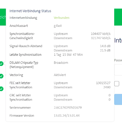 Habe ich also diese Stabilisierung irgendwie verursacht? Oder war die vorher schon drin wegen Problemen mit dem Centro und DSL-Filter? Wurde die Stabilisierung beim wechsel von VDSL2 auf g.fast zurückgesetzt?