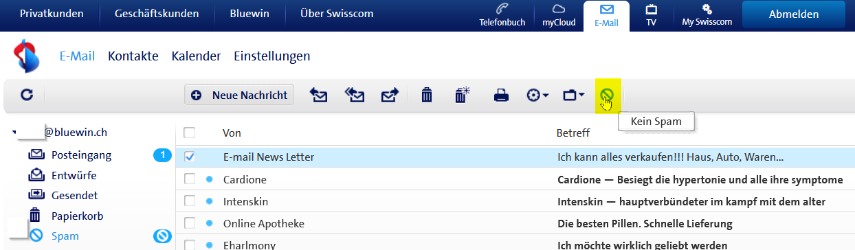 Damit Mails von einem bestimmten Absender zukünftig nicht mehr im Spam landen, sollt man die Mail als "kein Spam" markieren - sie wird dann auch in den Posteingang verschoben: