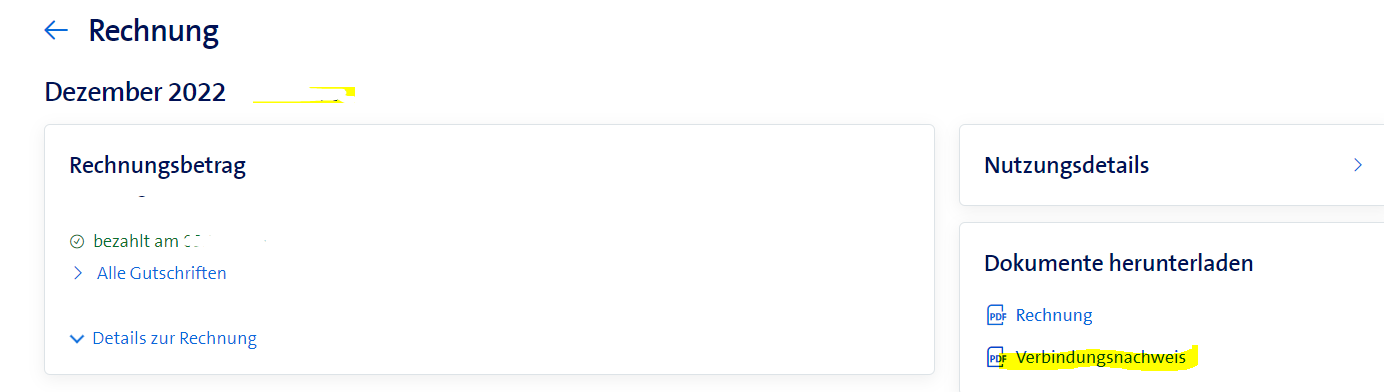 Im laufenden Monat (also auf Januar 2023 klicken) nach unten scrollen, dann findest du die laufenden Verbindungen und kannst die auch downloaden.