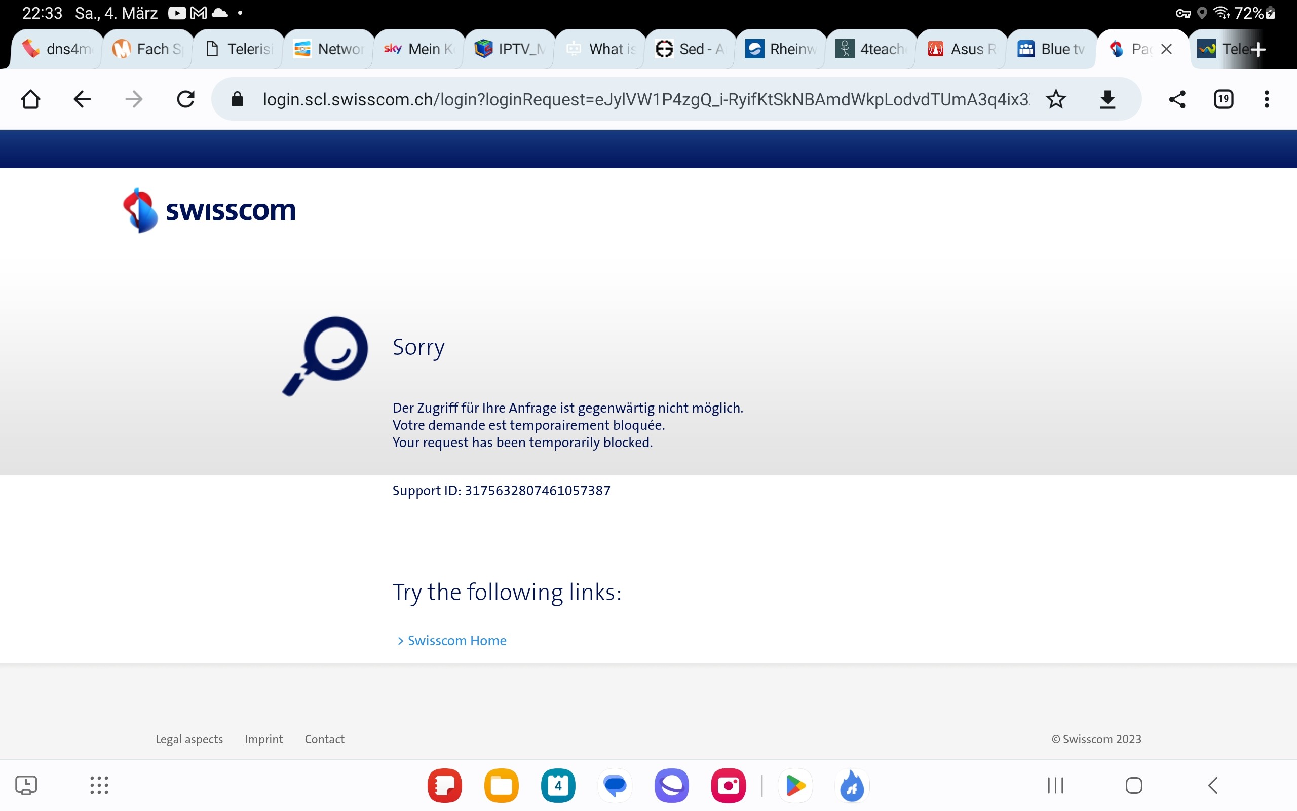 Aber daran scheint nicht zu liegen - auf der shield komme ich auch auf dem Browser nicht bis zum Anmeldeformular. Und auf der shield wird weder VPN noch dns4me genutzt