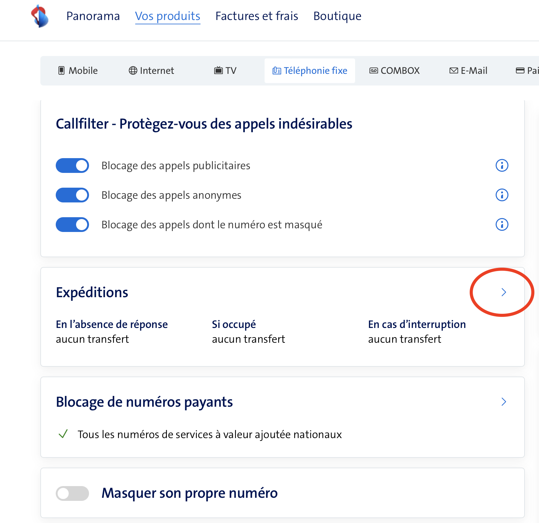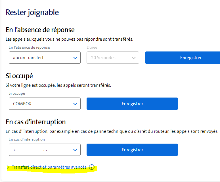 votre portable sonne en même temps que votre téléphone fixe. Effectivement cette proposition est bien présente il faut cliquer sur la petite flèche à droite ouvrir le menu comme présenté par @Gaeilgeoir ensuite cliqué sur les paramètres avancé pour découvrir cette proposition bien cachée.