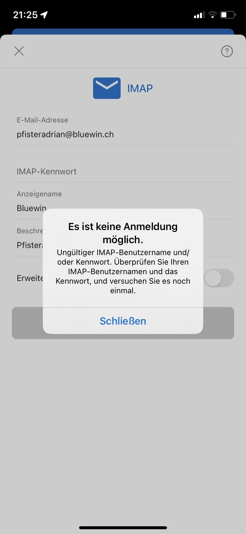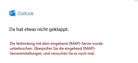 seit Sonntag kann der IMAP Server weder über die Outlook 365 auf meine Laptop noch über die Outlook-App auf meinem IPhone erreicht werden.