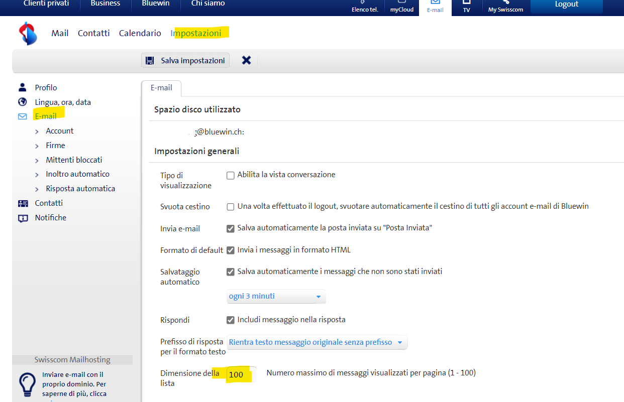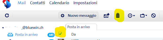 Gaeilgeoir Hussowie52 Nella webmail non si può fare tutto in una volta, si possono visualizzare solo un massimo di 100 messaggi (vedi immagine). Poi si può fare clic e cancellarli tutti come nell'immagine seguente