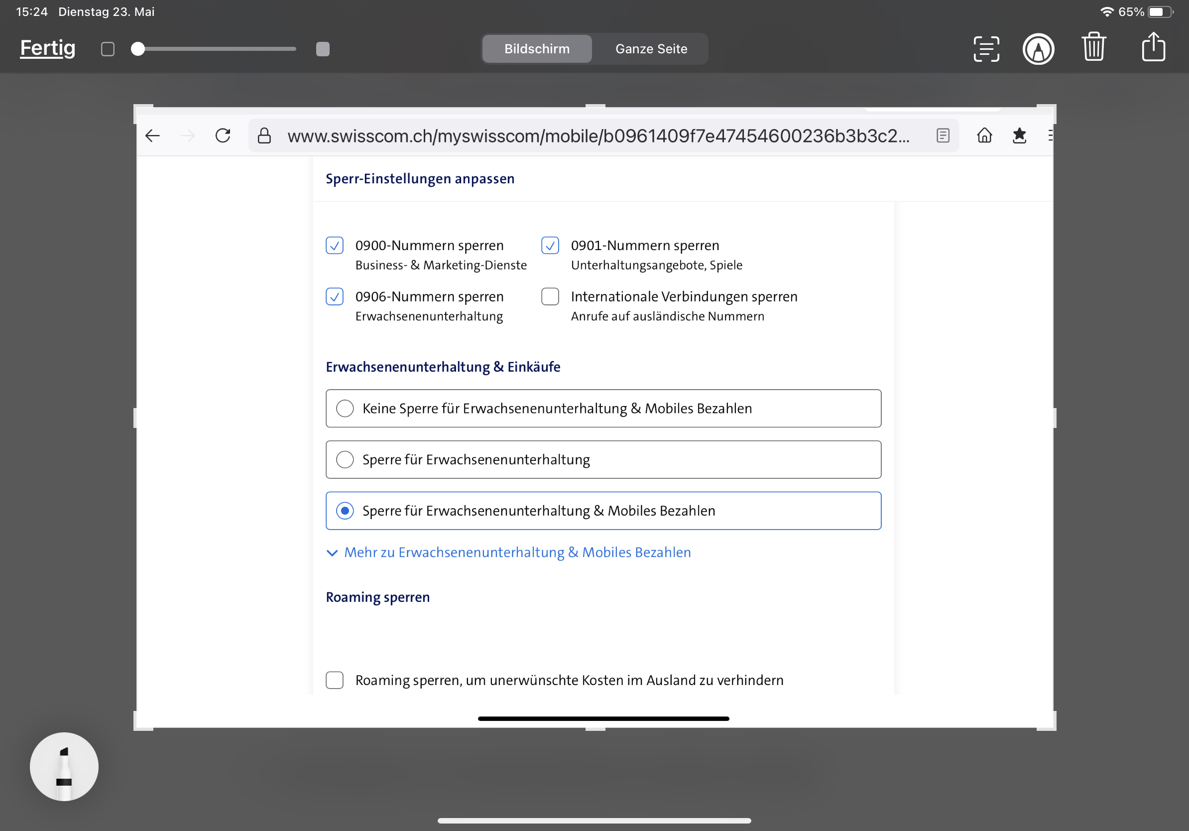 Neben den lokalen Einstellungen auf dem Mobile gibt es auch noch die generellen Einstellungen je Mobilnummer im Kundencenter:
