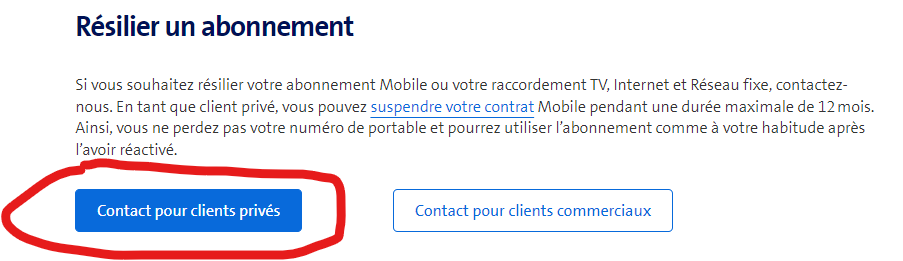 Gaeilgeoir Schesaldad82 Regardez ici: Résilier ou suspendre son abonnement – Aide | Swisscom Vous pouvez également contacter la hotline au 0800 800800 ou directement Swisscom via: Résilier: Motifs divers – Clients privés: contact par hotline, chat, message | Swisscom