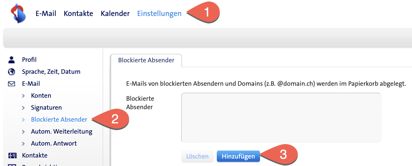 Was du aber tun kannst, ist den Absender blockieren. Dazu im Webmail unter Einstellungen, E-Mail den Absender in die “Blockierte Absender” Liste eintragen: