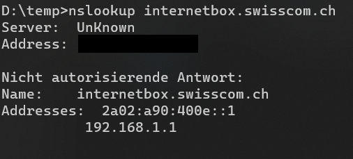 Allenfalls stimmt nur was nicht mit der DNS Auflösung für internetbox.swisscom.ch.