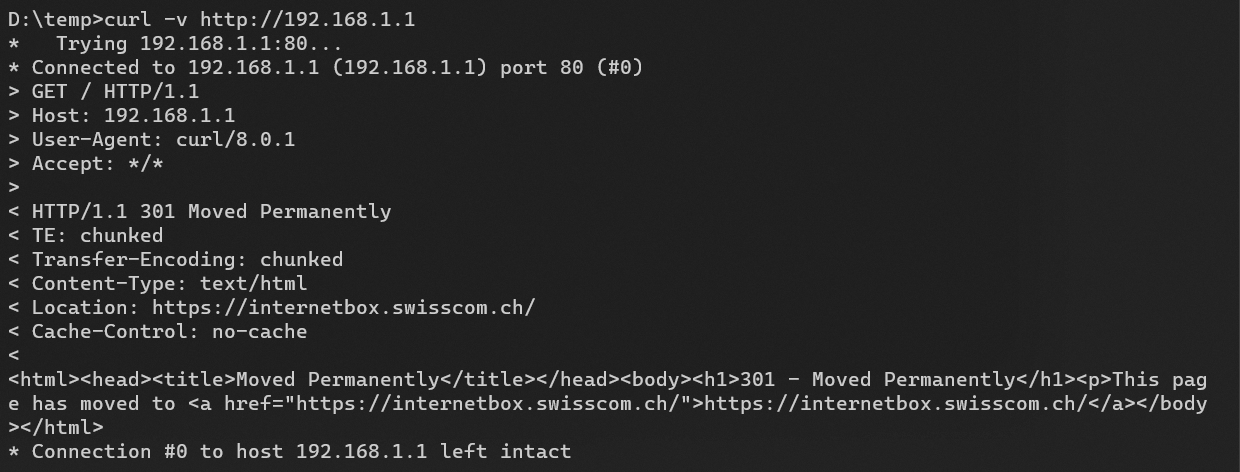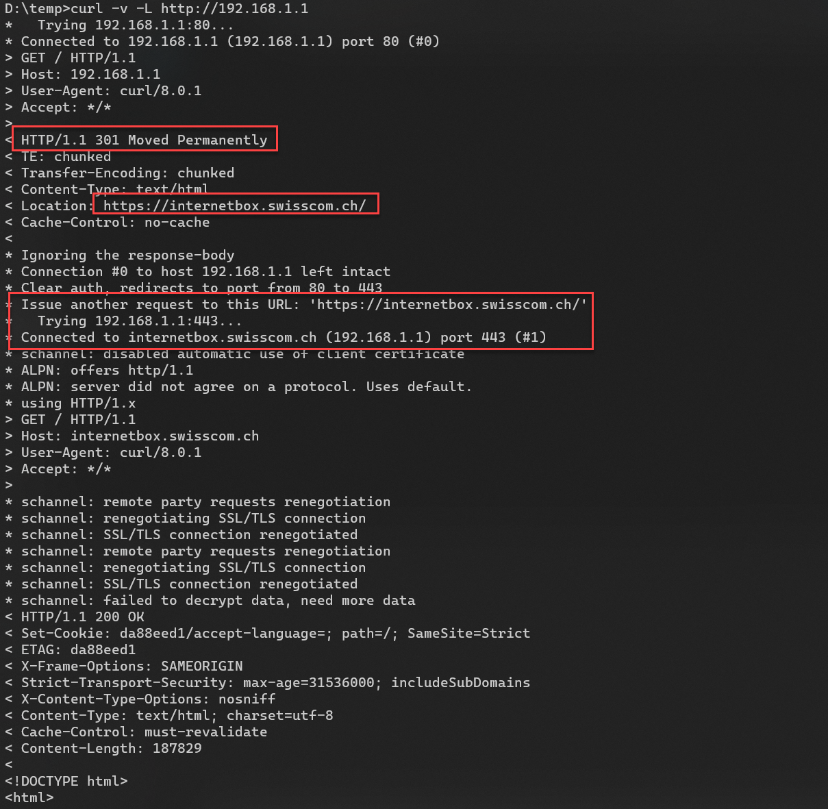 Ein Aufruf von http://192.168.X.1 löst ein 301 redirect zu https://internetbox.swisscom.ch/ aus.
