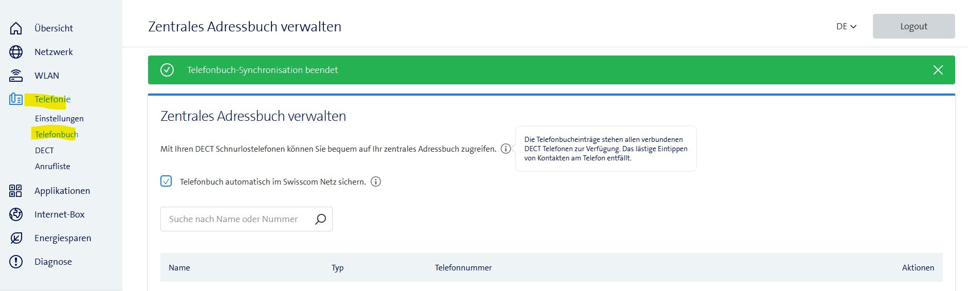 @Scheiyienneu25 Für Zusatz-Infos, siehe >in diesem Beitrag, wie du mit der My Swisscom App die Telefon-Kontakte von einem Smartphone oder Tablet zum "Zentralen Telefonbuch" in deine Internetbox übertragen kannst (Apple oder Android App).