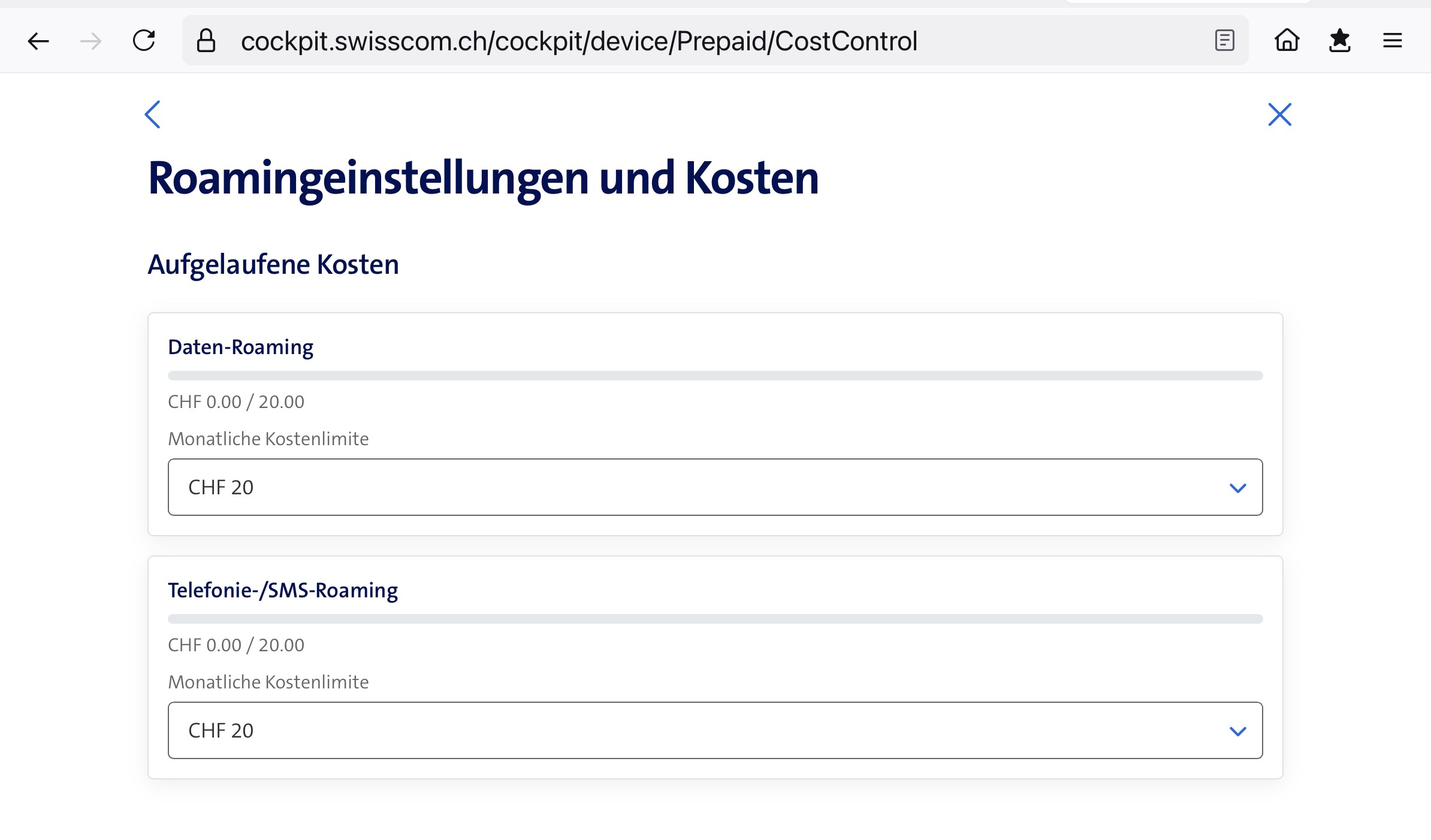 Werner In einem Browser mal "cockpit.swisscom.ch" aufrufen und dann da mal die Roaminglimiten überprüfen. Sieht dann z.B. so aus: Falls nötig, da die Telefonie-SMS-Roaming-Limite erhöhen.