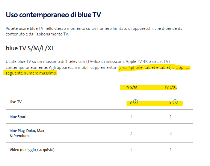 Jazieveum80 Dipende dall’abbonamento, se si vuole guardare la Blue TV su più TV tramite Box o App, è necessaria l’opzione Multiroom. Per altri dispositivi, come smartphone, PC e tablet, consultare la tabella al seguente link, dove tutto è spiegato.