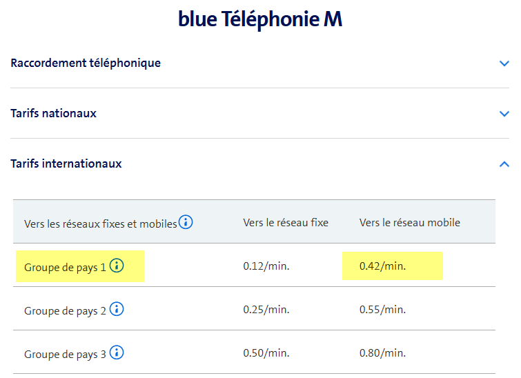 Le prix sera de 0.42 CHF/min, la France est dans le groupe 1.