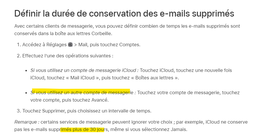 PS: Après, la limite de 30 jours s'applique sur les serveurs de Swisscom.