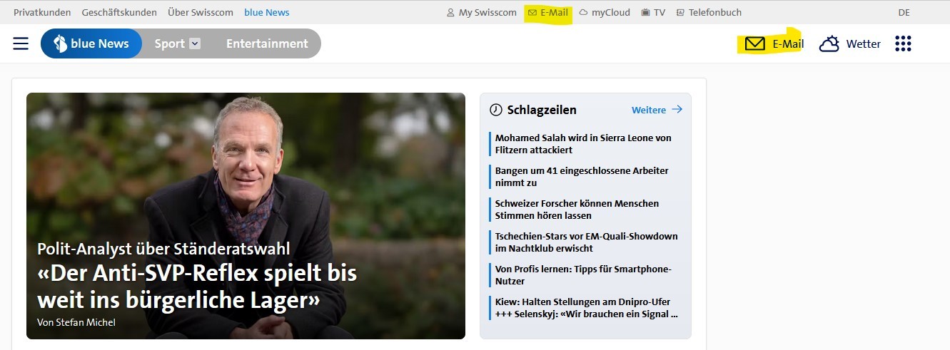 - über einen Internetbrowser auf http://webmail.bluewin.ch?