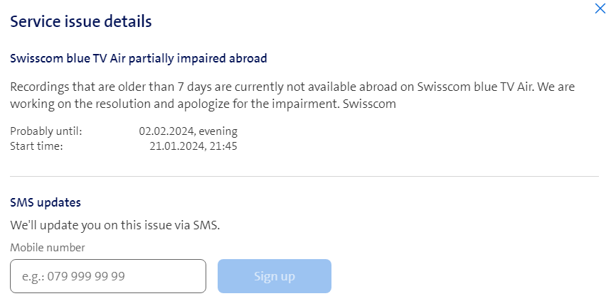 We are out of Switzerland and are getting "An error occured" message when trying to watch our recordings on BlueTV. Sometimes we can watch one recording then no more will work. Can log out then in again and the same occurs. It's not our internet. Any ideas?