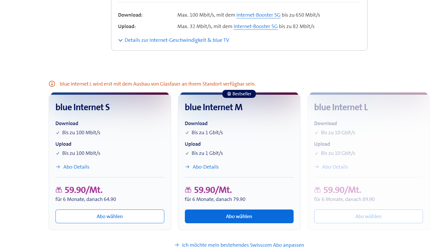 Da sollte dann kommen, wer Dir welche Geschwindigkeit anbieten kann. Siehe auch die Antwort von @POGO 1104 (Das es evt. ein Fremdnetz ist, ohne Kooperation mit Swisscom)