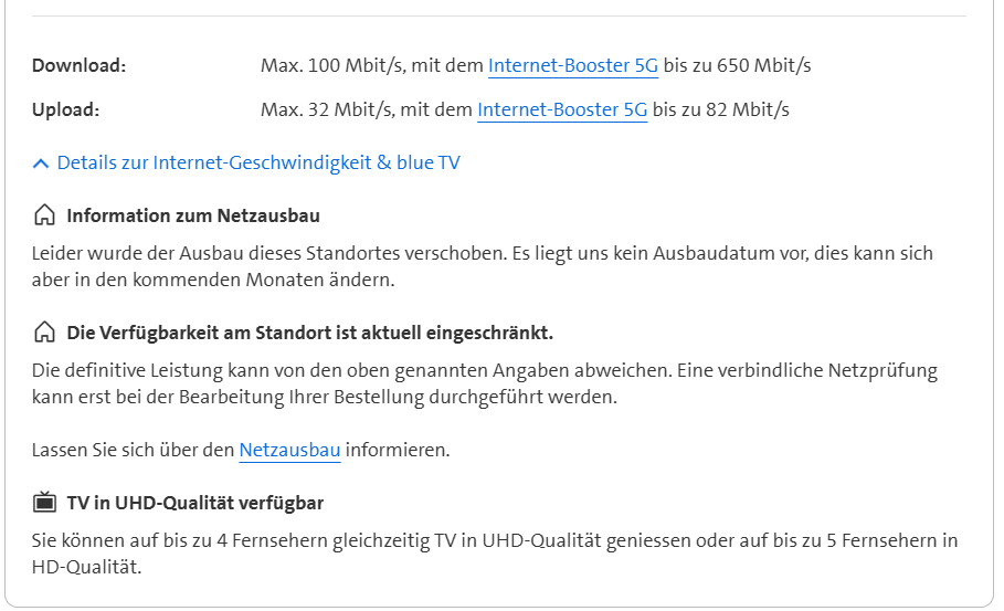 Klicken. Dann kriegst Du nähere Infos. Falls der Anschluss vom WEKO Entscheid betroffen ist, sollte das da klar ausgegeben werden.
