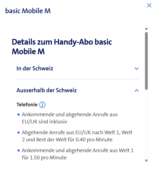 Ja Du hast da was falsch verstanden. Schweiz => Ausland ist beim Mobile M nicht dabei.