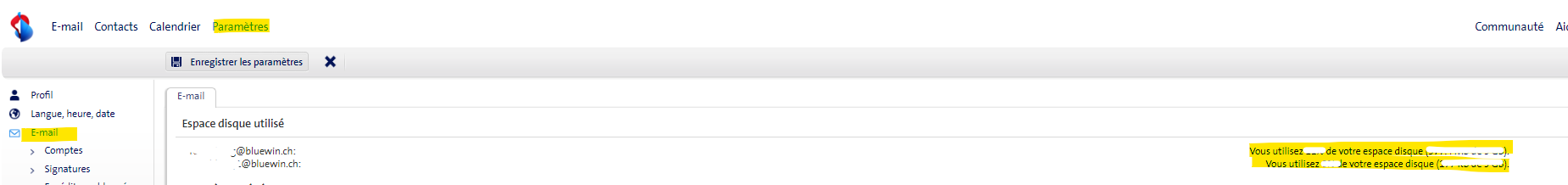 ne réussi pas à trouver l'espace libre/occupé de mes mails
