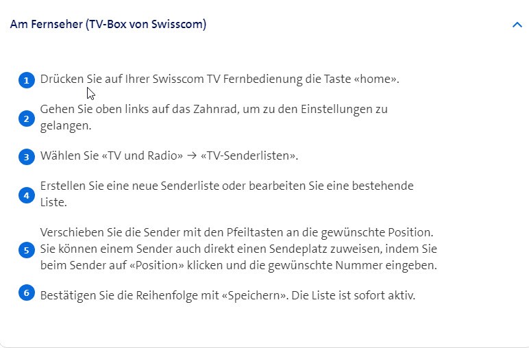 Mit der Swisscom-Box 21 funktioniert die Senderbearbeitung, aber ich möchte sie durch die Apple-Box ersetzen. (ist einfacher mit meinen mobilen Geräten)