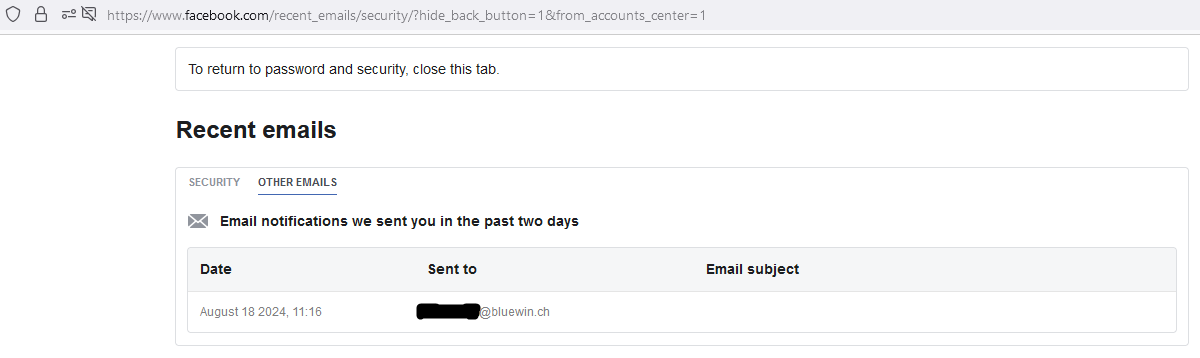 J'ai pu vérifier sur FB qu'ils annoncent un email envoyé au moment ou j'ai refait le test (bel et bien à mon adresse, @DanielD ) et il n'est jamais arrivé, ni dans les spam ou ailleurs. L'email devait contenir un code de sécurité pour que je puisse accéder à mes options d'authentification à deux facteurs.