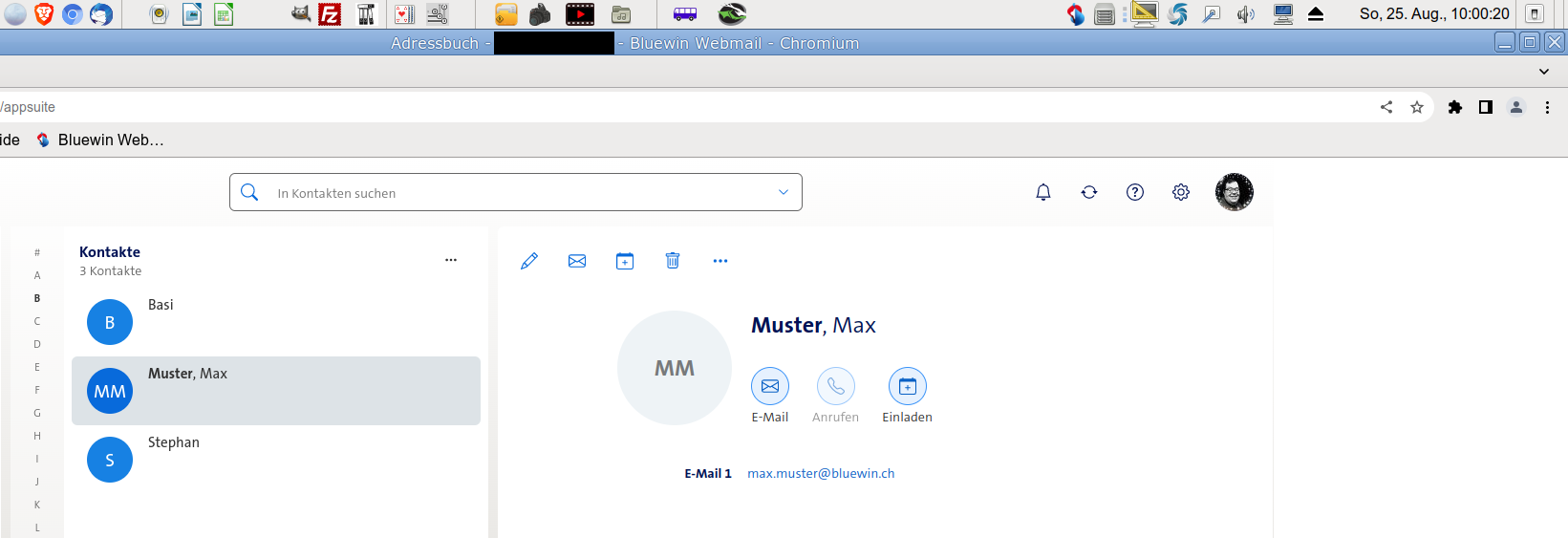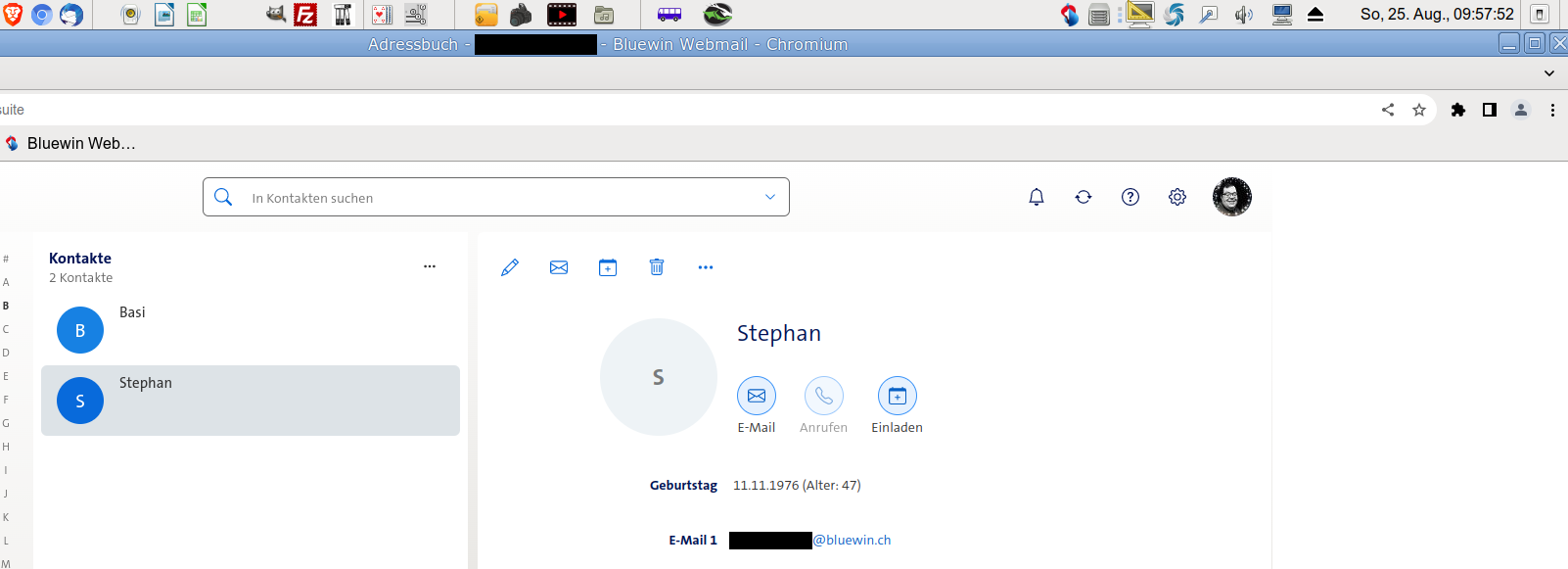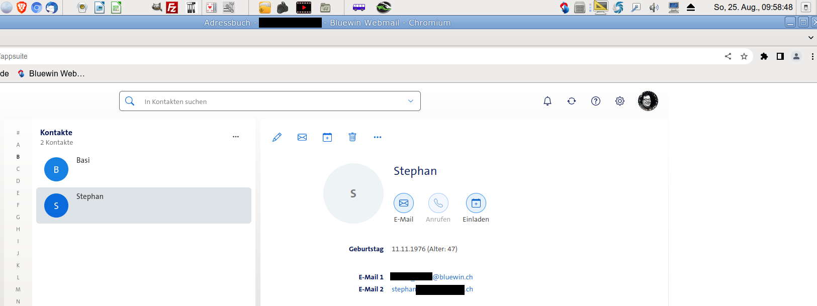 Hier habe ich den Kontakt bearbeitet und eine Adresse hinzugefügt. Mittels dem Stift (links vom Couvertsymbol):